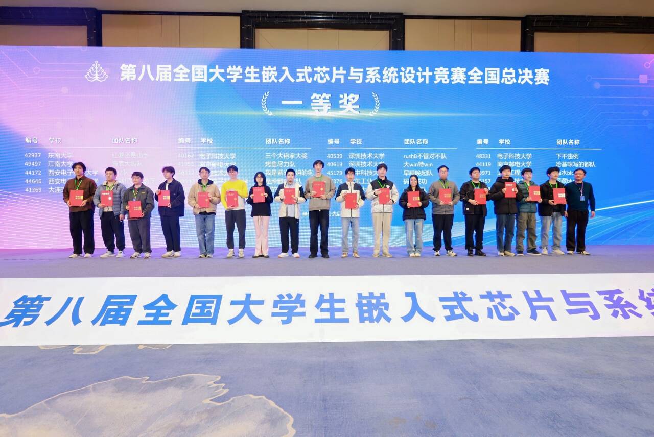 11月30日,2025年全国大学生嵌入式芯片与系统设计竞赛-芯片设计赛道决赛与FPGA创新设计赛道决赛在南京落下帷幕。做爱视频 参赛队获全国一等奖8项(芯片设计赛道1项,FPGA赛道7项),国家一等奖数位列全国高校第二名、其中做爱视频 学生获得国家一等奖4项,国家二等奖4项,国家三等奖5项。FPGA创新设计大赛是全国嵌入式芯片与系统设计竞赛三个专项赛之一,全国大学生嵌入式芯片与系统设计竞赛由中国电子教育学会主办,旨在提高全国高校学生在嵌入式芯片及系统设计领域、可编程逻辑器件应用领域自主创新设计与工程实践能力,培养具有创新思维、具备解决复杂工程问题能力且拥有团队合作精神的优秀人才。序号学生姓名学号获奖等级指导老师1于沛田B24021509国家一等奖郝学元、黄丽亚陶宸涵B240200282曹闻达B23020525国家一等奖郝学元、谌静李泽B230200183陈奕帆B23090625国家一等奖郝学元、崔国印季子超B240208204胡鑫媛B23020503国家一等奖谢祖帅、郝学元王译B23021409(撰稿:郝学元 编辑:徐伟 审核:谌静)