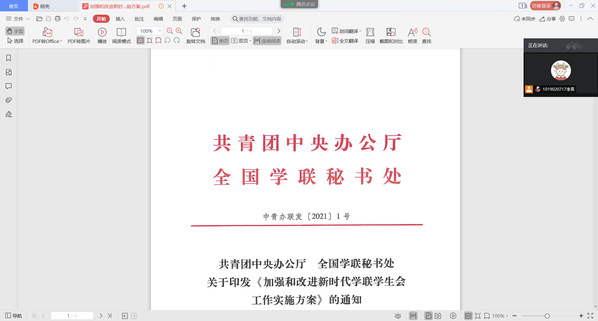 为深入贯彻习近平总书记致全国青联十三届全委会和全国学联第二十七次代表大会的贺信和党中央致词精神,全面落实全国学联二十七大确定的各项工作部署,加强和改进新时代学联学生会工作,电子与光学工程学院、微电子学院研究生会于2月22日18:30,组织全体成员学习《加强和改进新时代学联学生会工作实施方案》重要文件精神,会议由研究生会主席李昊主持。