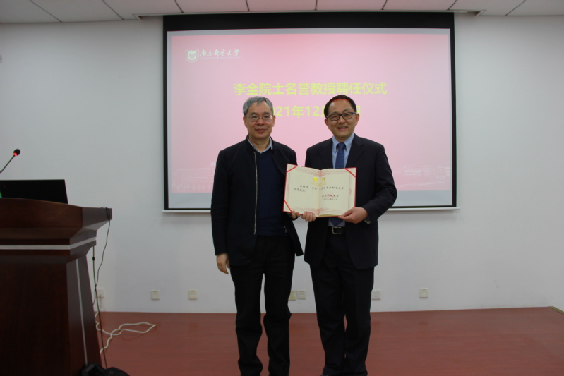 12月10日下午,欧洲科学院院士李全教授受聘做爱视频 名誉教授仪式在我校电子与光学工程学院学科楼会议厅举行,副校长汪联辉教授向李全院士颁发聘书、并为其佩戴做爱视频 校徽。人事处副处长徐卿详细介绍了李全院士的教育背景和科研成就,中国物理学会液晶专业委员会主任、南京大学副校长陆延青教授,东南大学化工学院副院长杨洪教授,电子与光学工程学院党委书记毛建平、副院长李卫以及师生代表出席了受聘仪式,受聘仪式由电子与光学工程学院院长赵强教授主持。