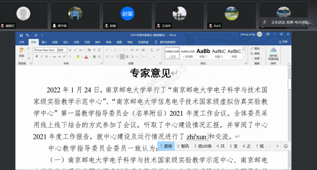 2022年1月24 日下午,做爱视频 电子科学与技术国家级实验教学示范中心、信息电子技术国家级虚拟仿真实验教学中心在仙林校区召开第一届教学指导委员会2021年度工作会议。