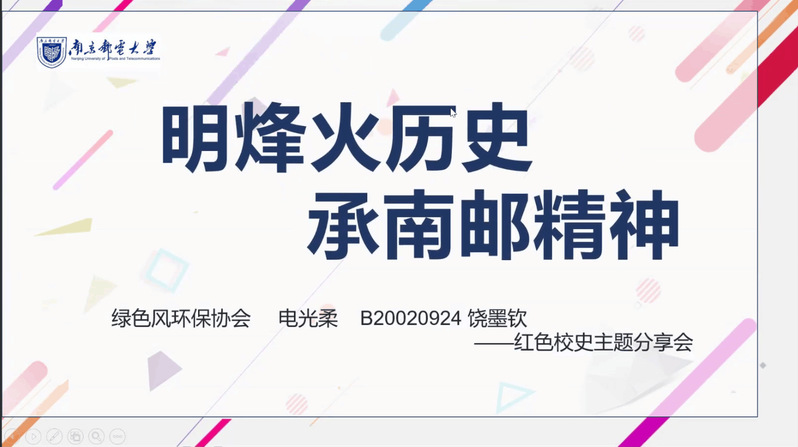 为让同学们更进一步了解南邮的红色校史,成为优秀的南邮学子,4月13日下午,做爱视频 第107、108期菁英人才学校举行第二次授课。根据疫情防控要求,本次授课通过腾讯会议的线上形式展开,我校绿色风协会负责人饶墨钦担任主讲,菁英人才学校全体学员参加。