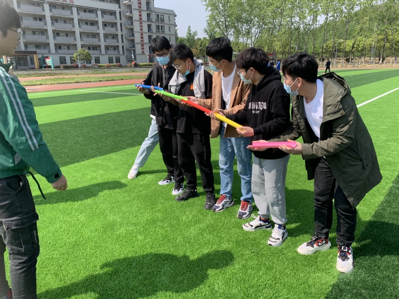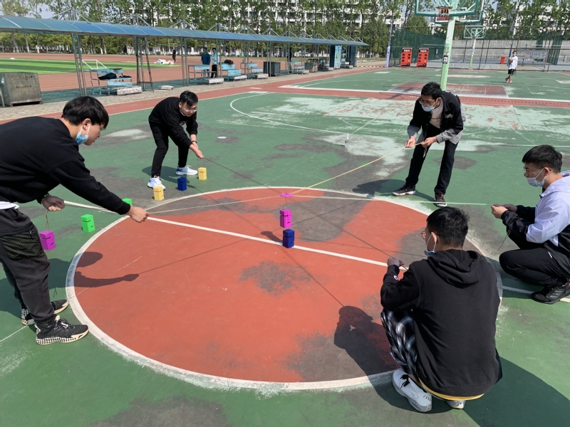 在传统项目“六人七足”中,考验的是同学们的协调合作能力,各小队一边喊着口号,一边稳步向前奔赴重点。在“仙人指路”项目中,每队由一名同学蒙眼参赛,在其余队友的指挥下,穿过重重障碍,敲响终点的“胜利之锣”。在“合力建塔”项目中,大家团结协作,将一块块积木通过绳索勾起,垒起一座座高塔。在“珠行万里”项目中,大家默契配合,让小球稳步接力前行。“投弹比赛”更是吸引了我们四位研究生辅导员老师参与其中。比赛在一片欢声笑语中落下帷幕。