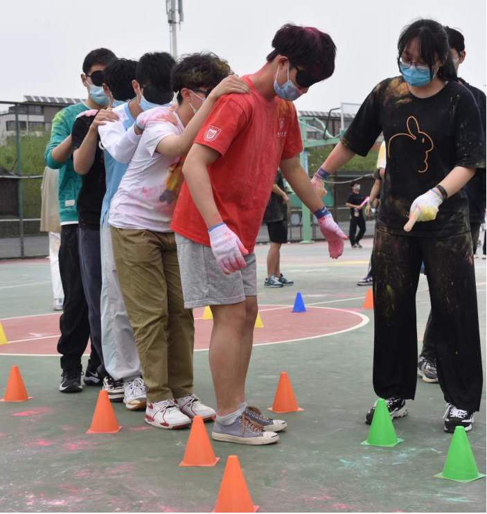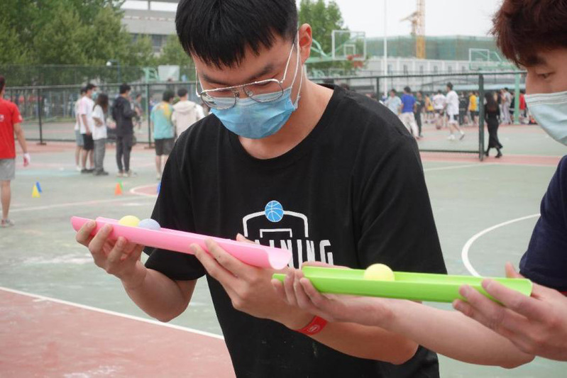 “混合接力”项目要求各队进行两人三足的往返接力跑。短暂磨合热身后,大家齐声地喊着口号,稳健地跨着大步;“蒙眼迷宫跑”项目则需要一名队员引导其余蒙眼成员按照规定路线走到终点,考验着引导员的反应判断以及队员间的信任默契;在“众人一条心活动”中,每个人都屏气凝神,小心翼翼地传递着小球,以完美的配合让小球稳步传递,成功到达终点。