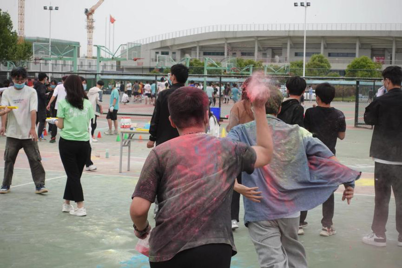 比赛之余,同学们用事先分发的彩粉相互喷洒,大家一起肆意奔跑、放声欢笑,为彼此留下最绚丽的彩色青春印记。活动在一张张充满笑容的合影中圆满结束。赛后,工作人员统计了比赛结果,并和同学们使用扫帚和推水器共同打扫了彩色粉末,使活动场地整洁如初。参赛的同学们在活动中不仅收获了欢乐,也获得了劳动体验、习得劳动本领。同学们自觉维护校园美景,涵养个人美德,实现了“创造美、感受美、延续美”的劳动教育目标。