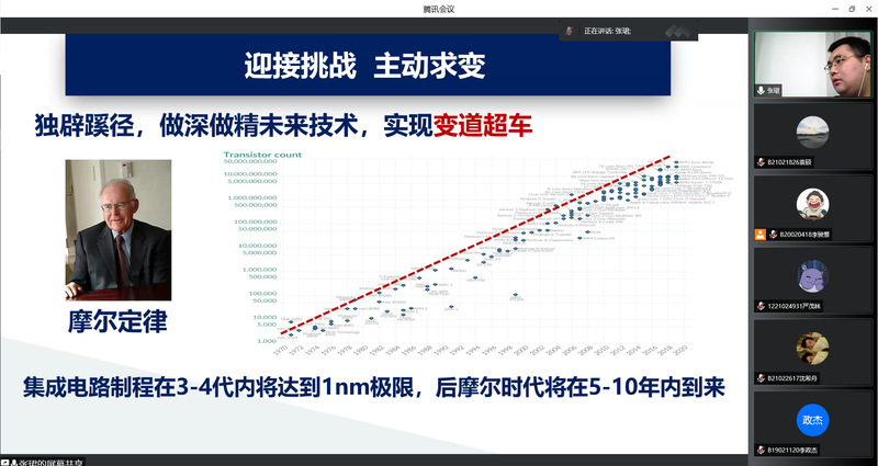 本次授课主题为《主动求变,勇于创新,冷静求证——浅谈大学生科技创新与创新思维训练》。没有守正,不知来路;没有创新,没有出路。课程开始,张老师便论述当今世界局势的复杂多变,危机与挑战并存。张老师以集成电路产业为例,着重强调了“科学技术是第一生产力”的观点,在科技发展中,大学生创新能力尤为关键。他表示:“基础科学的发展离不开创新,尖端设备的制造离不开创新,国之重器的研发离不开创新。”而对于个人,创新也是提升幸福感的重要途径。自信心和自主性是创新的内驱力,“面对质疑,冷静思考,面对阻力,主动求变”,这是课程最后张老师向同学们提出的要求,也是大学生培养创新思维的法门。