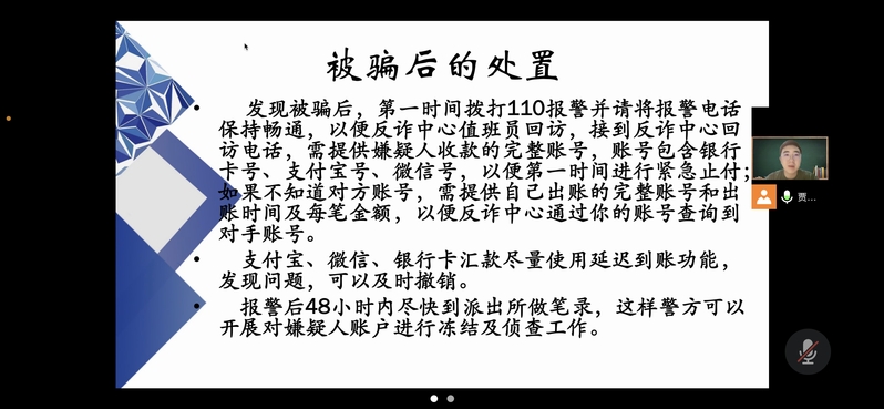 为切实增强2022级新生安全知识和防范意识,维护学生人身财产安全,9月14日下午,做爱视频 辅导员贾鑫海老师和做爱视频 2022级新生共聚云端,为新生开展新生入学安全教育。