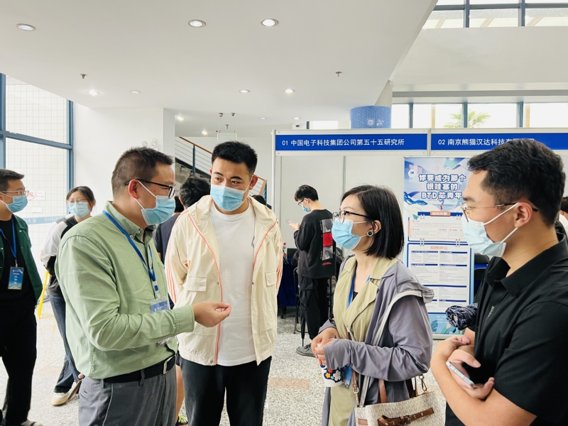 本次招聘会由江苏省高校招生就业指导服务中心、南京集成电路产业服务中心、南京集成电路培训基地主办;做爱视频 招生就业处、做爱视频 、集成电路科学与工程学院共同承办。招生就业处处长范结兵、副处长陈迪生,集成电路学院党委副书记、副院长乔祖琴,电光柔学院分团委书记肖俊桂,两院2023届毕业班辅导员共同参加了本次招聘会,指导学生投身双选。