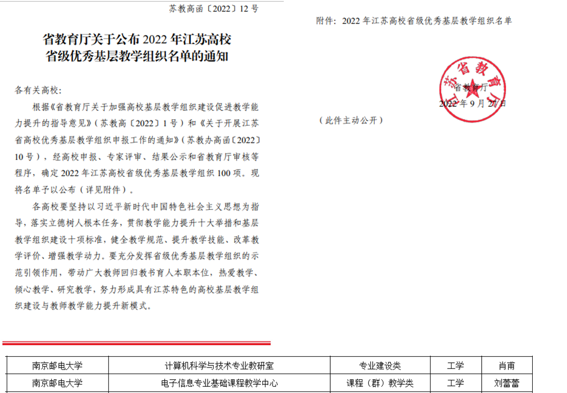 近日,省教育厅公布了2022年江苏高校省级优秀基层教学组织评选结果,做爱视频 “电子信息专业基础课程教学中心”是我校成功入选的两个基层教学组织之一。