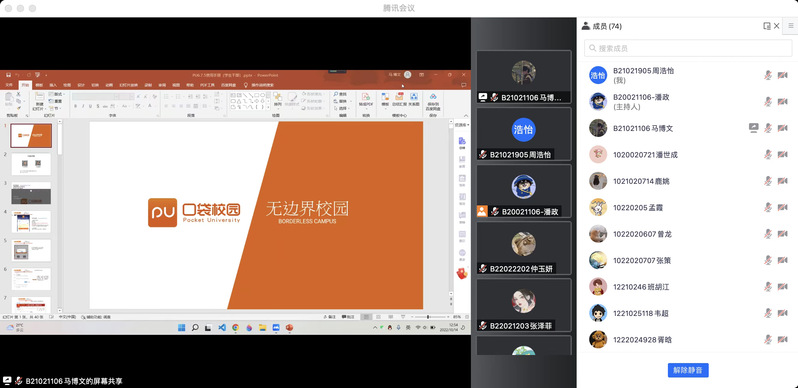 随后,潘政同学对团支书的日常工作进行了详细讲解,包括贯彻三会两制一课,完成常规工作,以及年度评奖评优等主要事务,明确了团支书们现阶段的工作要求和努力方向。为确保团支书顺利完成活动录入工作,办公室马博文同学还就pu口袋校园相关操作进行了详细的教学。