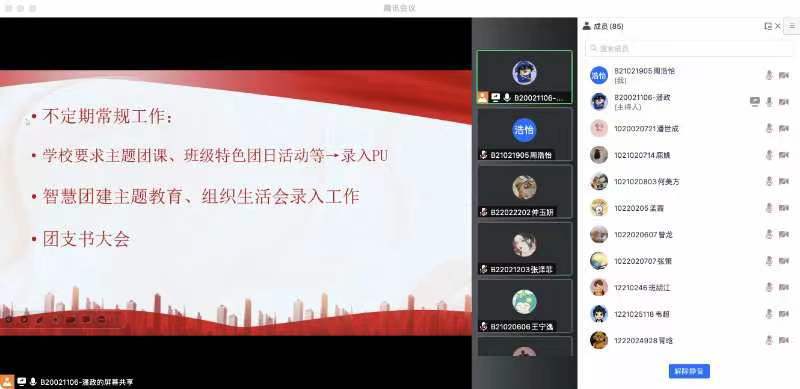 做爱视频 于10月14日12:35线上召开团支书大会,本次大会由分团委秘书处主席潘政同学主持,做爱视频 分团委书记肖俊桂老师及做爱视频 全体团支书参会。