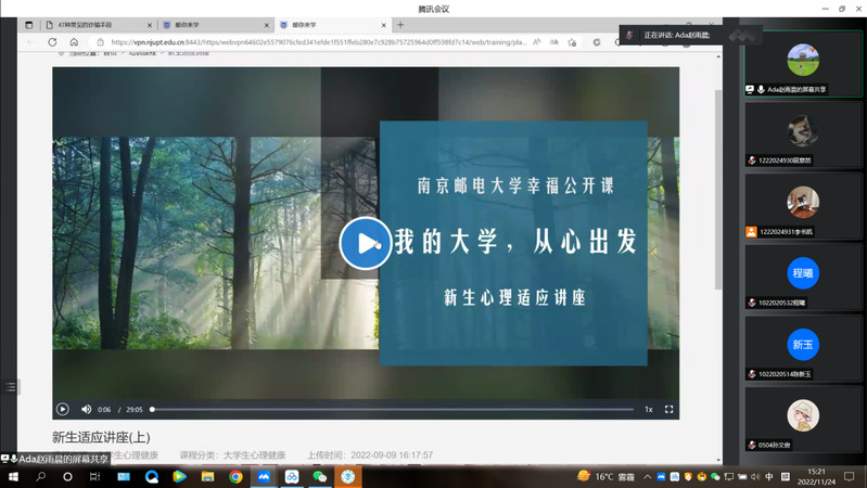 研究生新生入学教育是开启研究生科研生活的第一课,为指导和帮助研究生新生尽快了解和适应新环境、明确学习目的、端正学习态度、科学规划学习生活,顺利完成角色转变,扣好研究生生涯第一粒扣子。11月1日,做爱视频 组织开展了研究生新生入学教育。本次入学教育在符合疫情防控要求的前提下,以线上的方式开展,2022级研究生辅导员陈思伽老师、赵雨晨老师和全体研究生新生参加活动。