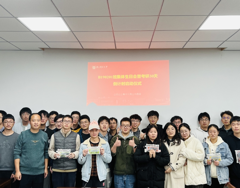 11月24日晚,做爱视频 2019级电子科学与技术专业B190201班兼职班主任张超老师为班级举办集体生日会暨考研30天倒计时启动仪式,学生班主任王怡钦和班级全体同学参加,会议由辅导员孙树将老师主持。