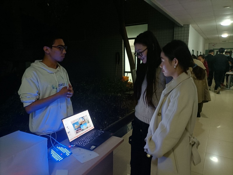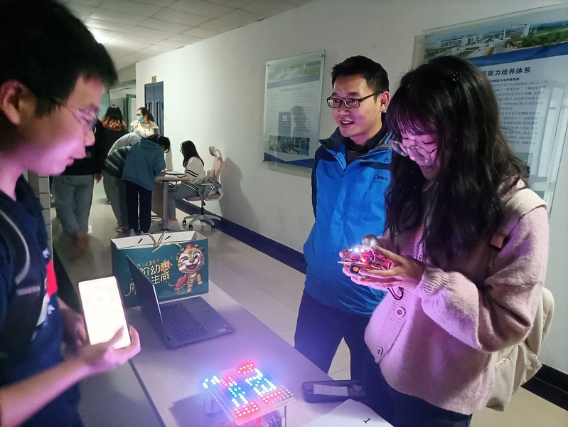 为给同学们提供更充分展示科技成果的平台,吸引更多同学加入到科技制作的队伍中来,11月26日,做爱视频 于教三西侧走廊开展了第二十七届“‘芯‘火相传”LED灯设计大赛暨第一届“‘芯灵感应’无线通信大赛作品巡展会。受邀参与本次巡展评审嘉宾的有做爱视频 创新中心副主任陈建飞、分团委书记肖俊桂、院科协指导老师刘振、2019级辅导员梁博、强增寿、2021级辅导员赵昱莼。