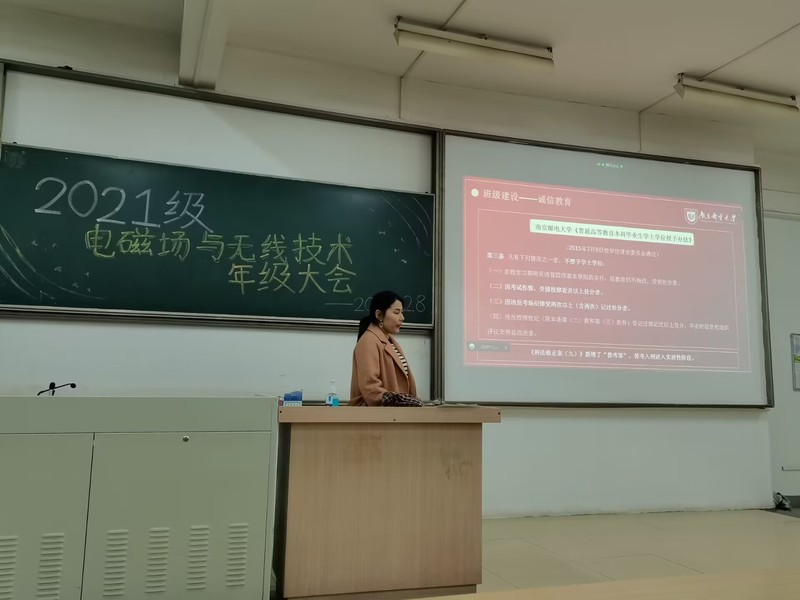 时值大雪,岁末临近,期末周的紧张氛围也愈发强烈。为了调节同学们对待期末考试的心态,合理认清当前的学习状态,增强同学们的年终安全意识,12月8日,做爱视频 2021级电磁场与无线技术专业召开年级大会,大会由2021级辅导员孜乃提古丽·布尔汉主持。本次大会线上线下同步进行,线下在教3-520开展,2021级电磁场与无线技术专业全体同学参会。