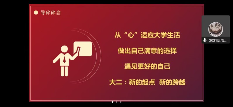 最后随着2021级电磁场与无线技术专业全体同学与辅导员合影,大会圆满落幕。本次年级大会帮助2021级电磁场专业的同学们调整了考试心态,也使同学们明晰了前进方向,提高了防诈骗和安全意识。希望同学们在接下来的学习生活中能合理调整自身的学习状态,从“心”适应大学生活,做出自己满意的选择,遇见更好的自己,让大二成为一个新的起点,开启一段新的征程!