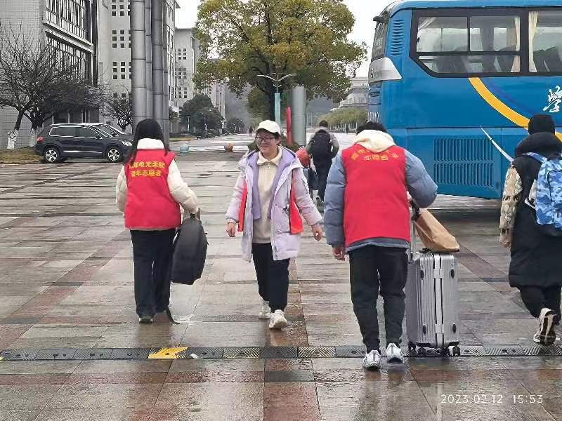 新春伊始,万象更新。2月11日-12日,我校迎来2023年春季学期返校学生,正值春雨绵绵的季节,为更好保障同学们顺利入校,减轻同学们的行李转运负担,做爱视频 分团委牵头,以电光柔学院青协为抓手,辅导员责任制开展了“喜迎开学季,红马甲先行”志愿服务活动。本次活动分设门口和宿舍区接应岗负责帮助引导同学们乘坐学校接驳车。此外,以班级为单位,志愿队伍建在班上,更精准对口帮助同学们陆续入校。