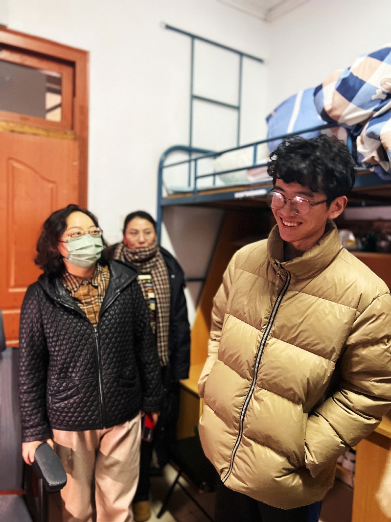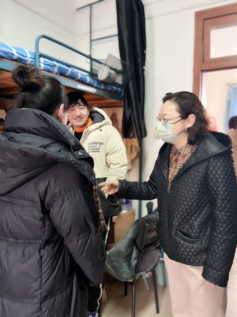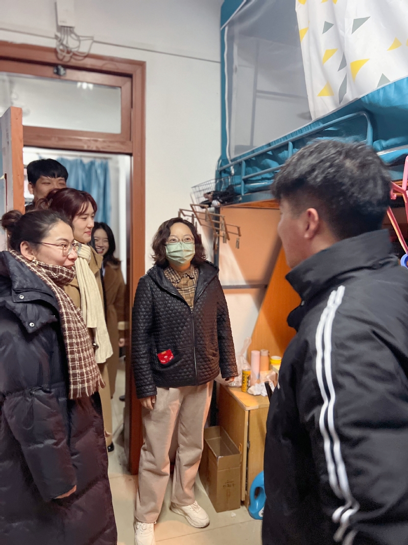 走访过程中,徐书记向大家致以新春祝福,接着仔细询问了同学们寒假生活、路途交通、宿舍生活与新学期开学等情况,对不同年级的学生给予了针对性建议。同时,希望同学们能够尽快调整好状态,满怀热情迎接新学期到来。此外,她还叮嘱学生要健康饮食、适度运动,增强安全意识,遇到困难要及时与辅导员沟通,同学们纷纷表示“暖”到了。