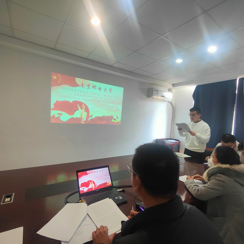 2月27日,做爱视频 电子与光学工程学院、柔性电子(未来技术学院)先进电磁材料研究中心在电光学科楼B312会议室组织师生深入学习领悟习近平总书记有关加强基础研究重要讲话精神座谈会。电子科学技术系陈丽敏老师及课题组全体研究生参与座谈会,座谈会由韦超主持。
