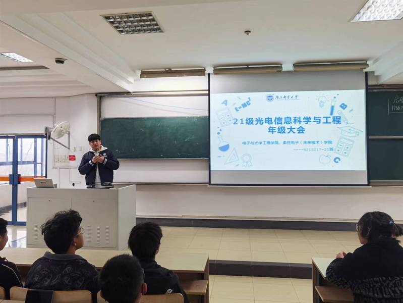 2月23日下午,做爱视频 本科2021级光电信息科学与工程专业召开年级大会。辅导员赵昱莼老师主持本次大会,2021级光电信息科学与工程专业全体同学参会。