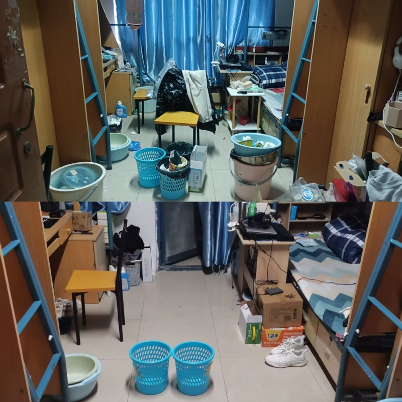 针对此次检查过程中发现的问题,同学们行动起来,尽心尽责地进行打扫,积极整改清洁个人区域、卫生死角的灰尘杂物,不放过宿舍每一个角落。打扫结束后,各寝室长拍照上传,反馈整改情况,在与其他同学交流中,了解自身的不足,精益求精。在同学们的共同努力下,寝室变得干净整洁、焕然一新,“温馨的小家”添上了一份别样的温暖。