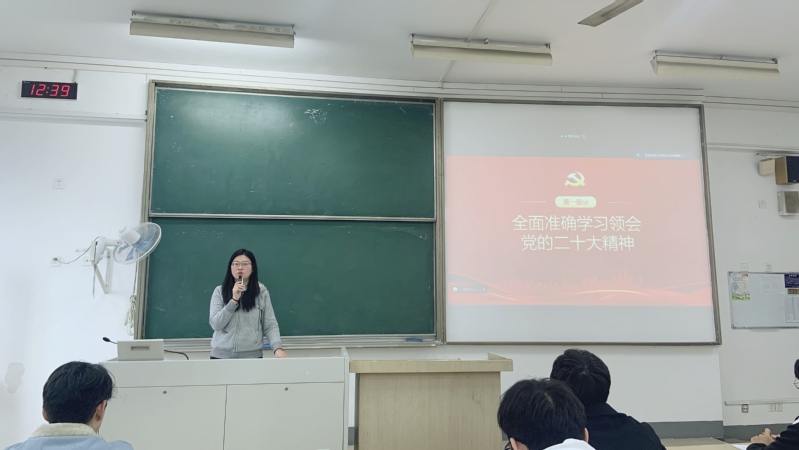 首先,祝腾老师带领参会同志一起回顾了党的二十大报告的相关内容,阐述了深入学习贯彻党的二十大精神的重要意义,要坚定不移听党话、跟党走。支部全体成员观看了党的二十大精神学习视频。开展组织生活会时,全体党员同志秉持实事求是的原则,逐一进行对照检查,分组严肃认真地开展了批评和自我批评。在分享小组讨论心得的环节中,卞大井同学提出在学好理论知识的基础上,也要走入实地感受学习,进一步提高政治信念、理论素养和实践能力。闵欣浩同学结合实际分享了在过去一年备战考研的经历,还提出作为党员应时刻与党中央保持高度一致。随后,党支部综合分析党员日常表现,结合民主测评结果,实事求是地对每名党员提出评定意见并向本人反馈。