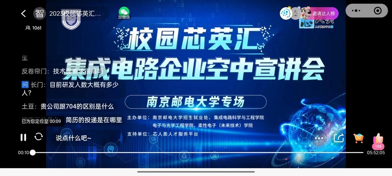为全面贯彻落实党的二十大精神,落实党中央、国务院“稳就业”“保就业”决策部署,强抓春季就业工作关键期,3月20、21日,做爱视频 、集成电路科学与工程学院、校招生就业处共同举办校园芯英汇生基成电路企业空中做爱视频 专场宣讲会,本次空中宣讲会由芯人类人才服务平台支持。