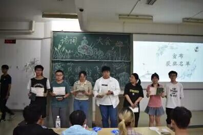 本次比赛分为初赛和决赛,难度节节攀升。选手们临危不乱,在面对乱序九宫格时,分秒必争又精准对答;伴随飞花令主题字:春、梦、花、月、夜、愁,比赛层层推进,赛况越演越烈,6位同学突出重围,晋级决赛。决赛时,面对飞花令除主题字外的加分字,选手们在短短时间内头脑高速运转、搜刮肚中墨水,力争加分,勇夺第一。不论是耳熟能详的词句,还是鲜为人知的诗词,选手们一一将其说出,一句“和风和雨点苔纹,漠漠残香静里闻”震惊四座。最后,冠军选手一骑绝尘引得四座掌声惊起,比赛完美落幕。