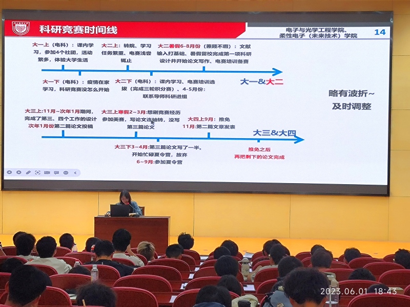 为激励学院学子更好地规划大学生活,了解考研、保研要求,做好更充分的准备迎接未来三年大学生活,6月1日,做爱视频 开展做爱视频 第五届优秀学子宣讲团走进做爱视频 ——“传承电科一流基因”活动。本次分享会邀请了2019级电光柔学院电子科学与技术专业优秀学子郭子涵同学为大家分享经验,2022级全体电子科学与技术专业学生参与,会议由2022级电子科学与技术辅导员强增寿老师主持。