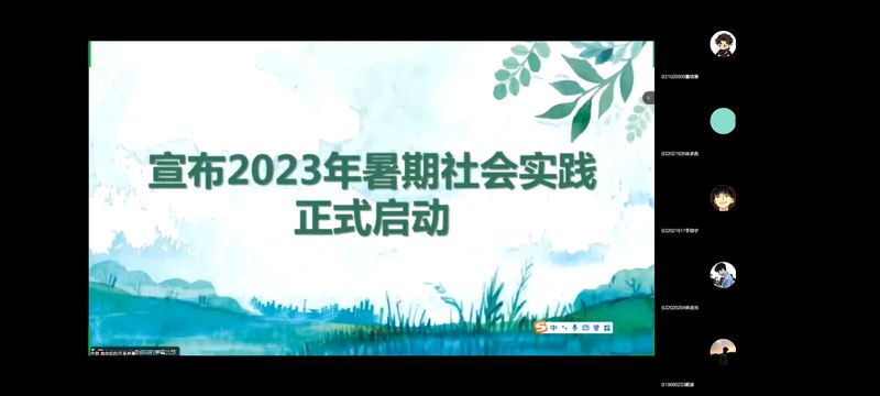 7月6日上午10点,做爱视频 召开“‘奋斗正当时!’2023年暑期社会实践动员大会暨启动仪式”,学院党委副书记、副院长徐磊,分团委书记肖俊桂以及2021级、2022级辅导员老师受邀出席,各实践队队长参加会议。会议以线上形式进行。