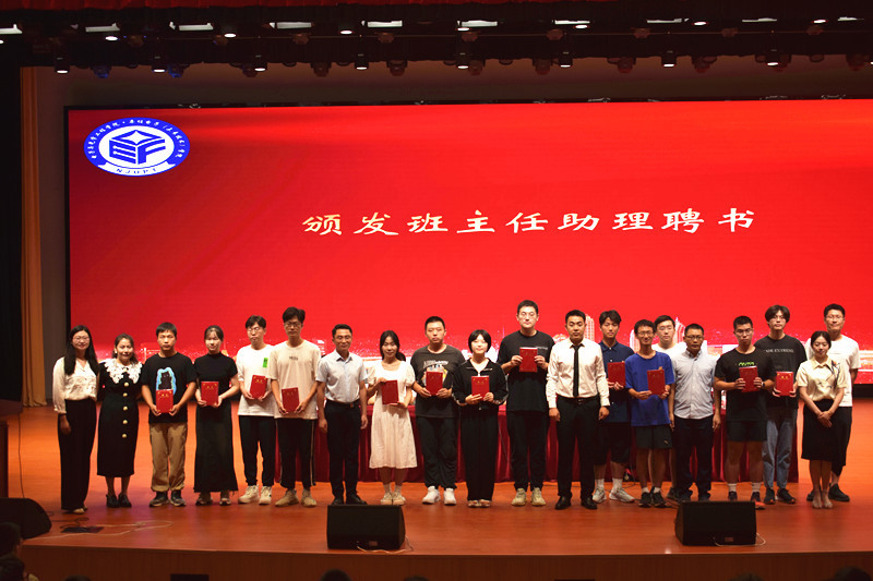 会上,学院还隆重举行了班主任、班主任助理聘任仪式,学院党委书记毛建平教授郑重宣读了学院2023级新生班主任、班主任助理聘任决定,与会校、院领导为班主任、班主任助理们颁发聘书。典礼当日正值教师节,现场全体同学自发起立,齐声高呼“老师,节日快乐!”,新生代表更是走上台前,为现场的领导、老师们送上鲜花,以表祝福。