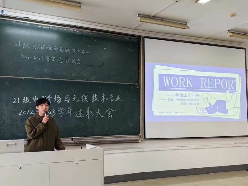 为有序开展新学期工作,加强各班建设,激发全体班干部履职尽责、为同学服务的积极性,更好地指导新生班干部工作的开展。10月11日下午,做爱视频 2021级电磁场与无线技术专业在教2-211召开了2022-2023学年述职大会。会议由2021级电磁场与无线技术专业刘子诚同学主持,2021、2023级电磁场与无线技术专业全体学生班干部、入党积极分子参会。
