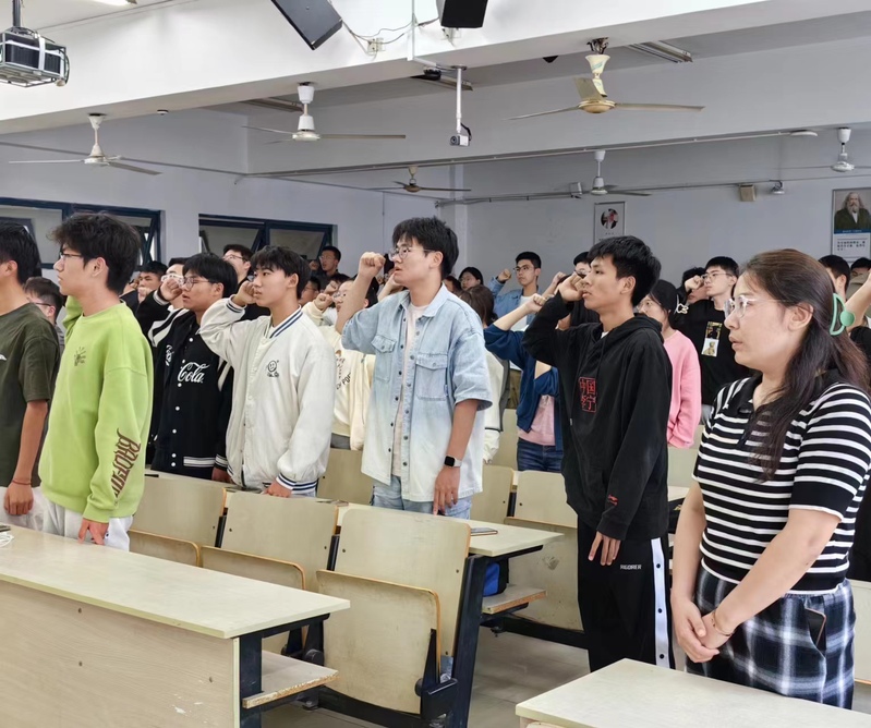 会议最后,主持人刘子诚同学带领所有与会班干部宣誓,辅导员古丽老师为2021级电磁场与无线技术专业全体学生班干部颁发聘书。
