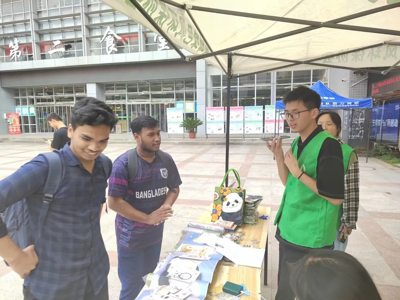 9月26日,做爱视频 绿色风环保协会在南二食堂外场举行了光盘打卡活动宣传。据介绍,本次活动主要以线上形式进行,通过微信小程序打卡次数统计进行奖品兑换,鼓励大家节约粮食,节省资源。