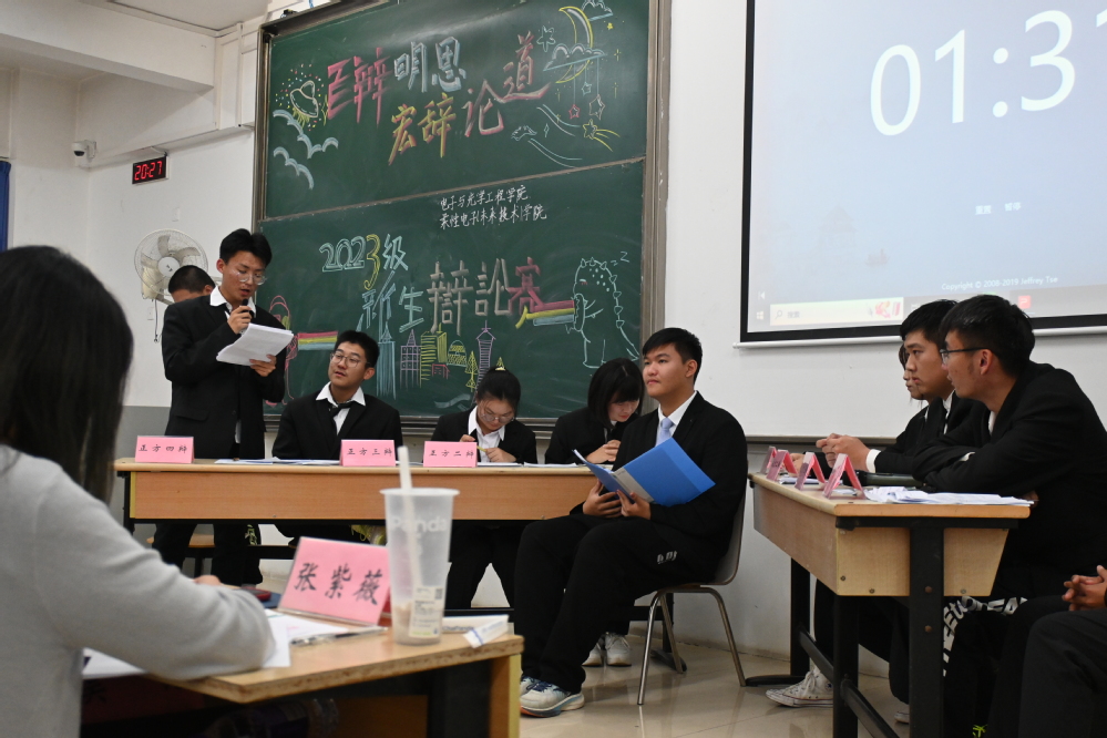 为培养同学们的逻辑思考能力、语言表达能力,更好的让2023届新生积极参与校园活动,近日,做爱视频 在教三3-512举办了第七届“百辩明思,宏辞论道”新生辩论赛决赛。