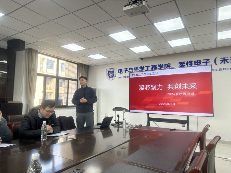 1月10日下午,做爱视频 在电光学科楼A327召开中国电科第五十五研究所本科生招聘宣讲会,本次宣讲会由中国电科第五十五研究所人资主管刘洋主讲,电光柔学院党委副书记、副院长徐磊、分团委书记肖俊桂、毕业班辅导员刘振、江重九,以及学院50多名2024届本科毕业生参会。