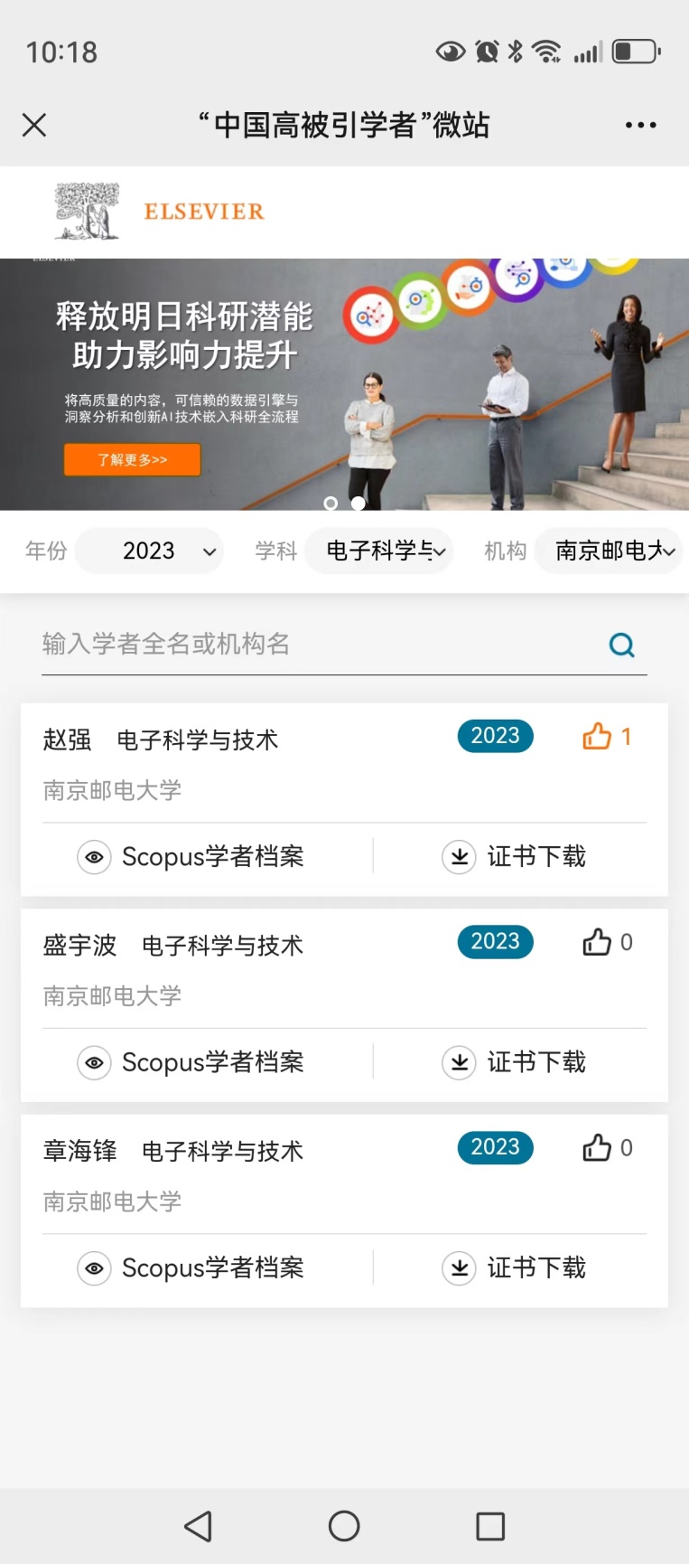 2024年3月27日,全球性信息分析公司爱思唯尔(Elsevier)正式发布了2023“中国高被引学者”(Highly Cited Chinese Researchers)榜单。南邮共有8名教师入选。其中做爱视频 赵强教授、盛宇波教授、章海锋教授3名教师入选。