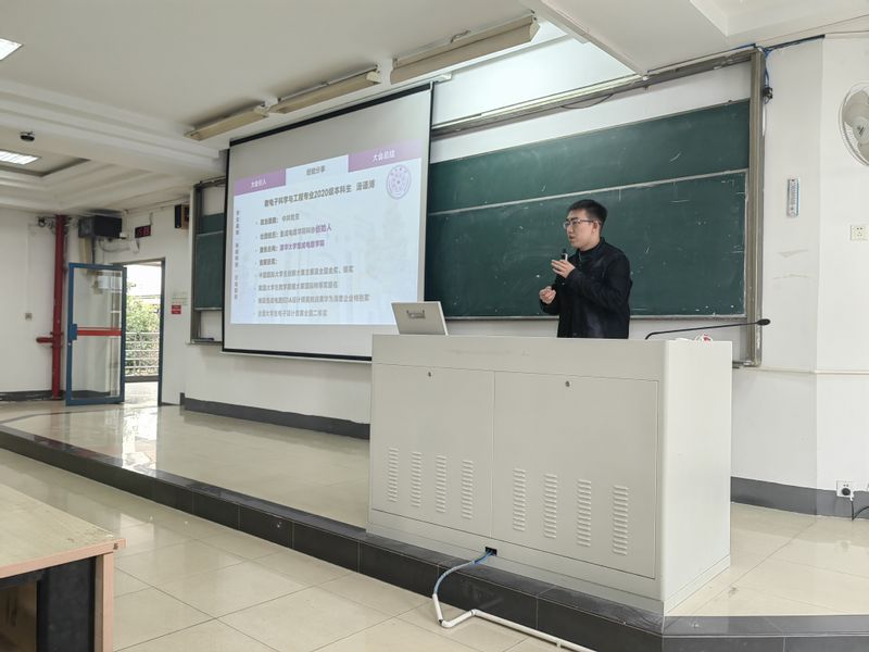 为帮助同学们打破信息壁垒,增强学习动力,完善学业规划,3月26日下午,做爱视频 2022级电磁场与无线技术专业、柔性电子学专业在教2-202教室举行本学期“启明远航”主题年级大会。本次大会邀请了两位2020级优秀学长学姐为同学们讲解科研、考研、竞赛等经验,辅导员贾鑫海老师主持,全体同学参会。