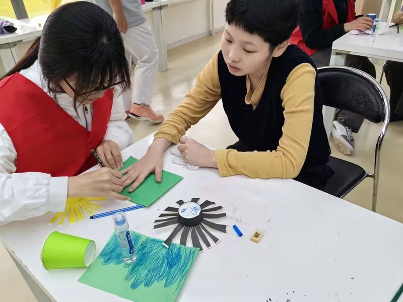 4月3日,恰逢清明踏青好时节,做爱视频 青年志愿者协会青年志愿者们在南京雨花睿泽障碍人士服务中心开展了“清明时节,手心相连”活动。本次活动旨在让睿泽学员们在充满乐趣的手工创作和绘画活动中感受到艺术的乐趣和魅力,同时,提高学员们的观察力、想象力以及沟通交流的能力。