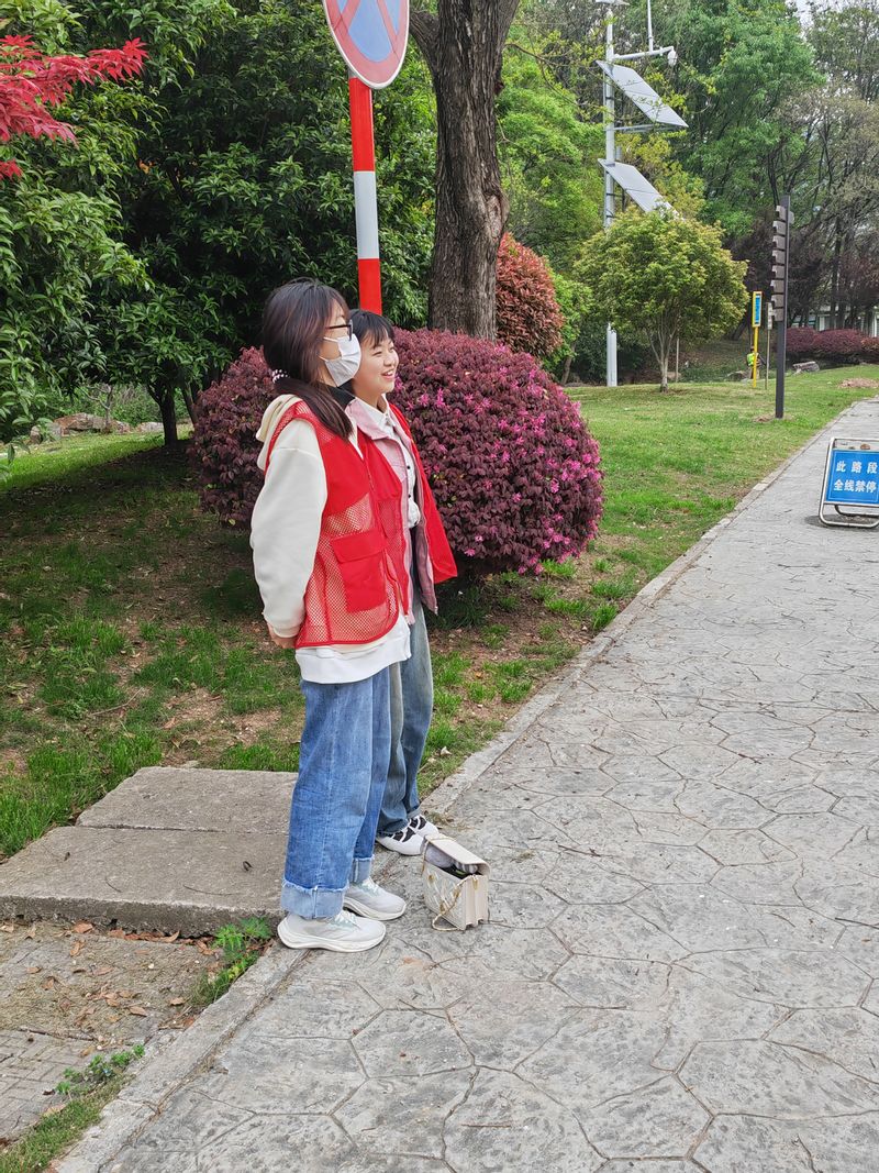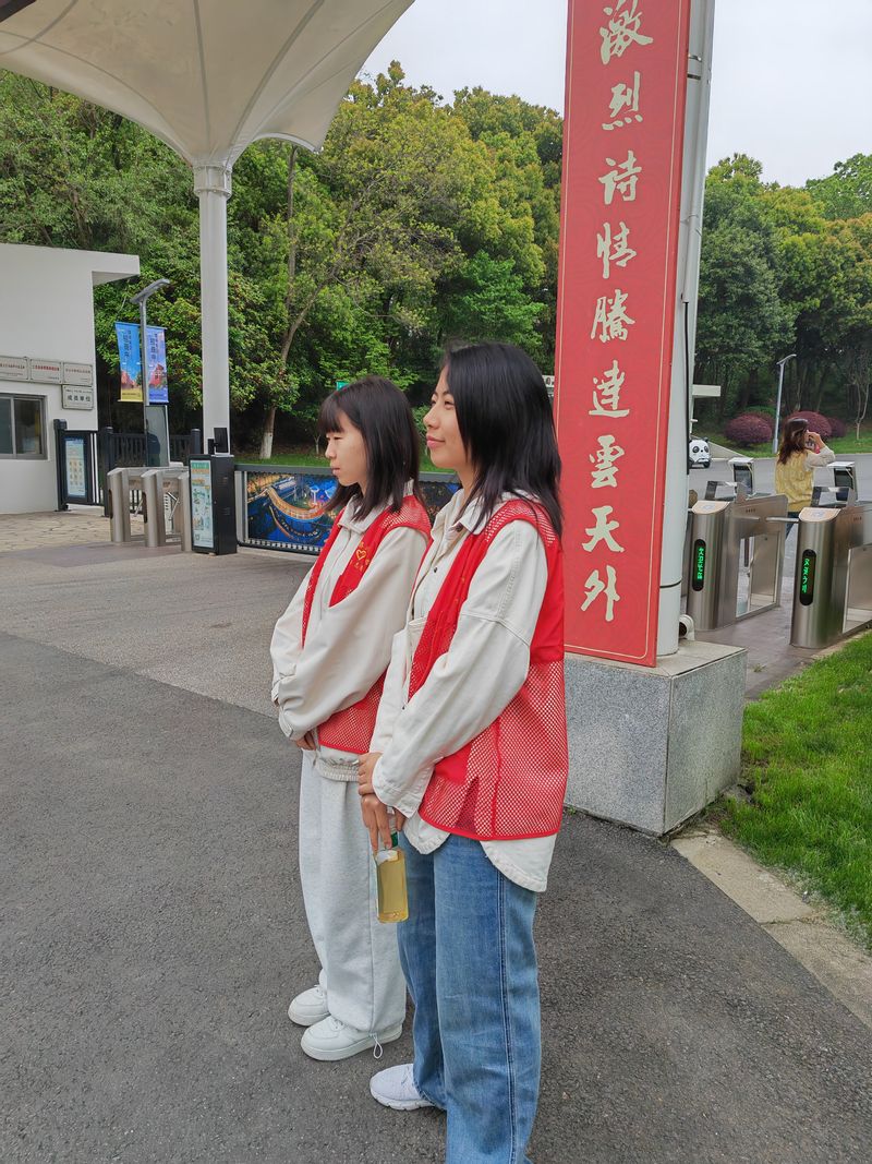 聚宝山公园是一座集山野、自然、绿地于一体的综合性公园,游人们可以尽情呼吸新鲜的空气,感受到大自然的生机和活力,也可以进行丰富多彩的露营活动。本次志愿服务活动开展分为三组进行,分别在各个大门及关键入口道路站岗,辅助保安、阿姨安排游客归置不同的游客代步交通工具。