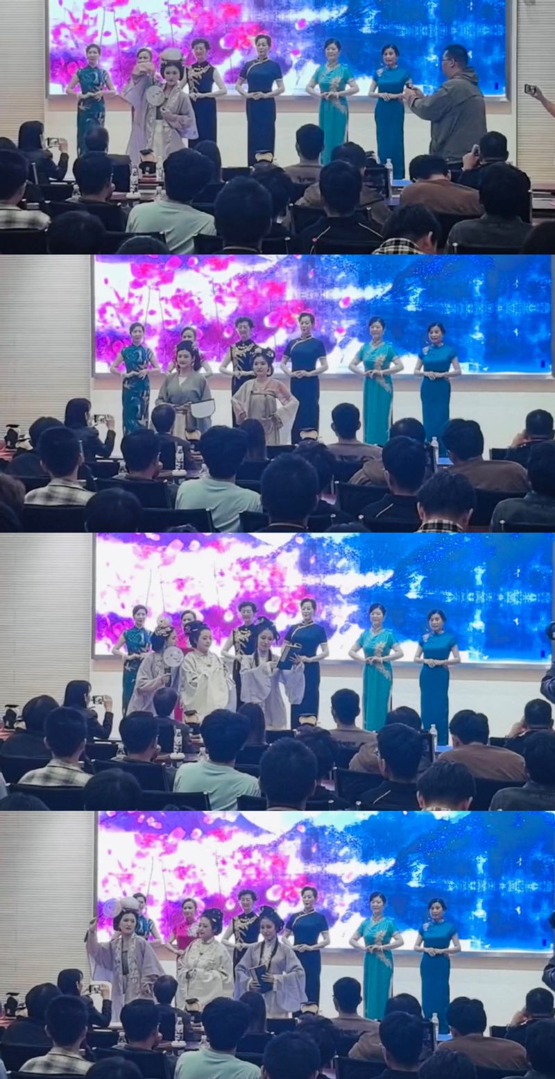 本次活动主要从两个单元展现了不同历史时期的中国传统服饰。伴随着悠扬的音乐,关工委的老师们身穿旗袍缓缓登场,淋漓尽致地展示出东方女性温婉柔美、独立内敛的别致韵味。旗袍,是中华文化的一个符号,彰显了儒家文化所倡导的含蓄、中庸、悠闲、端庄的精神传统,以优雅婉约的形制、独具韵味的纹饰最大程度地塑造出具有和谐之美的东方女性形象。