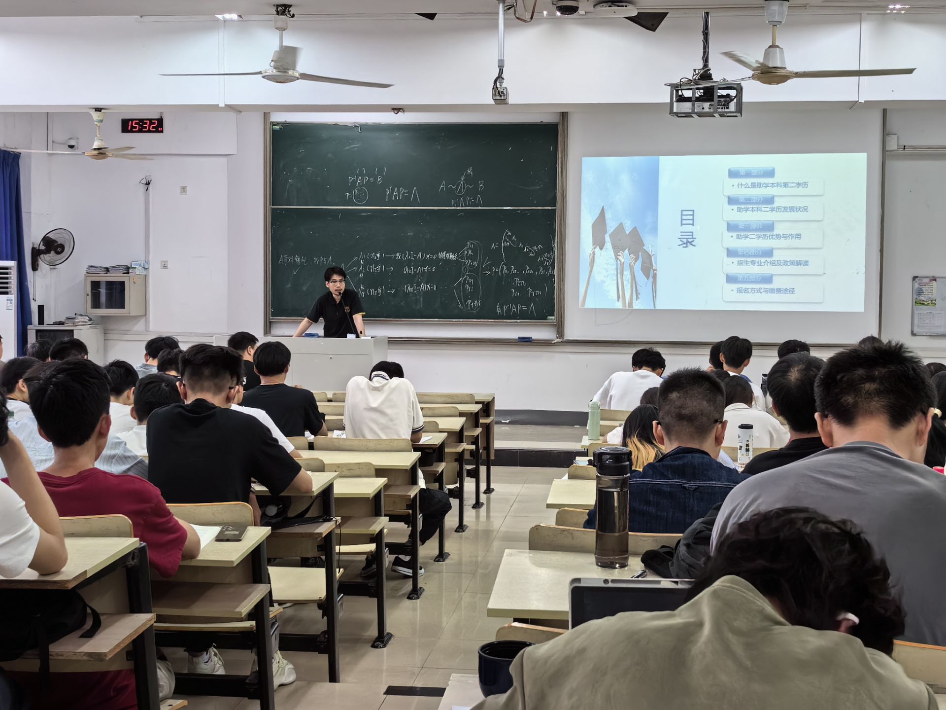 为了聚焦国家战略发展需求,提升大学生跨学科综合素养,助力大学生高质量升学和就业,更好地满足经济和社会发展对人才的多样化需求。5月,做爱视频 23级光电专业开展二学历招生宣讲会。本次宣讲会邀请了继续教育学院张宸皓老师主讲,23级全体光电同学参加。