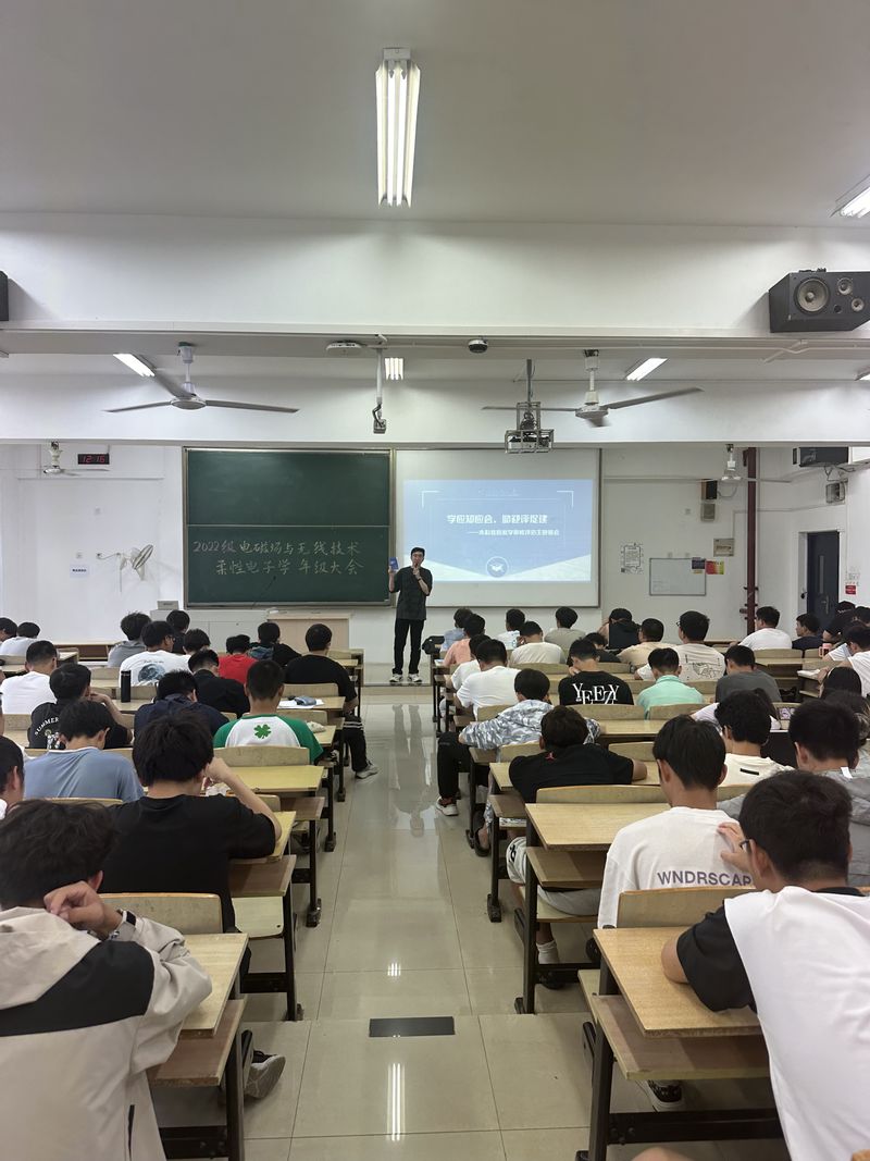 为进一步推进“启思·明德·砺学”主题教育活动,切实做好教育教学审核评估评建工作,持续推进学风建设、校园文明建设、班级日常建设等, 6月5日,做爱视频 2022级电磁场与无线技术专业、柔性电子学专业在教3-412召开年级大会。会议由贾鑫海老师主持,全体学生参加。