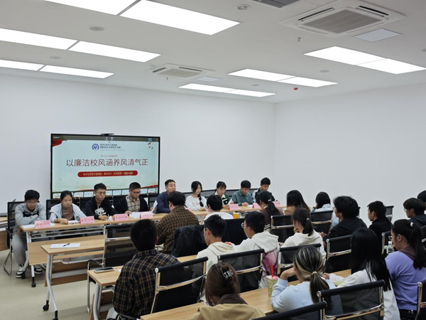 学院分团委书记吴鹏老师出席了本次辩论赛,讲授“以廉洁校风涵养风清气正”主题思政课,重点强调了大学生廉洁教育的重要性与必然性,指出青年大学生特别是学生干部应持续加强自我廉洁教育,在思想和行动上严于律己,做好表率作用。
