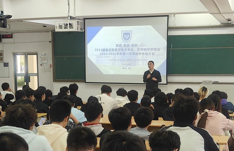 11月13日,做爱视频 2023级电子科学与技术专业、柔性电子学专业2024-2025学年第一学期期中年级大会在教4-102教室顺利召开。本次会议由辅导员梁博主持,全体学生积极参会。