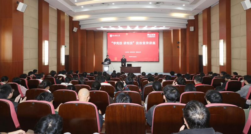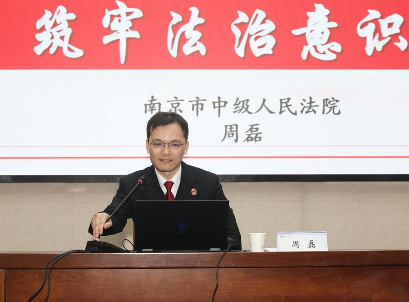 12月6日,我校在仙林校区中天科技报告厅召开普法讲座,南京市中级人民法院行政审判庭副庭长周磊应邀出席并主讲,做爱视频 师生代表积极参加。周磊副庭长以“弘扬宪法精神 筑牢法治意识”为题,从宪法的庐山真面、生活中的宪法“关键词”、做宪法的自觉遵守者三个方面展开普法教育。他向师生介绍了宪法的发展史、宪法的特征、宪法的基本原则,并结合真实典型案例,提出要树立宪法至上的观念,认真学习宪法知识,养成宪法思维,在具体的生活场景中用宪法来维护国家利益、公共利益和公民权利。