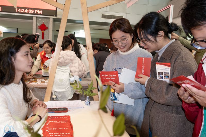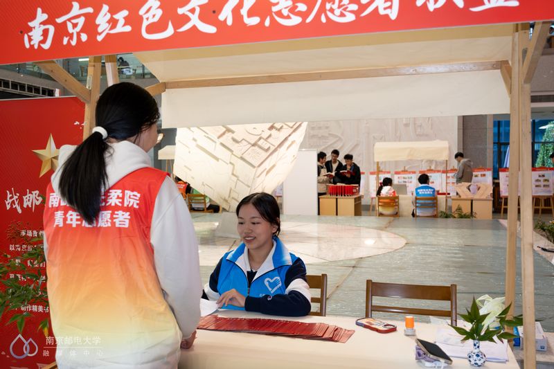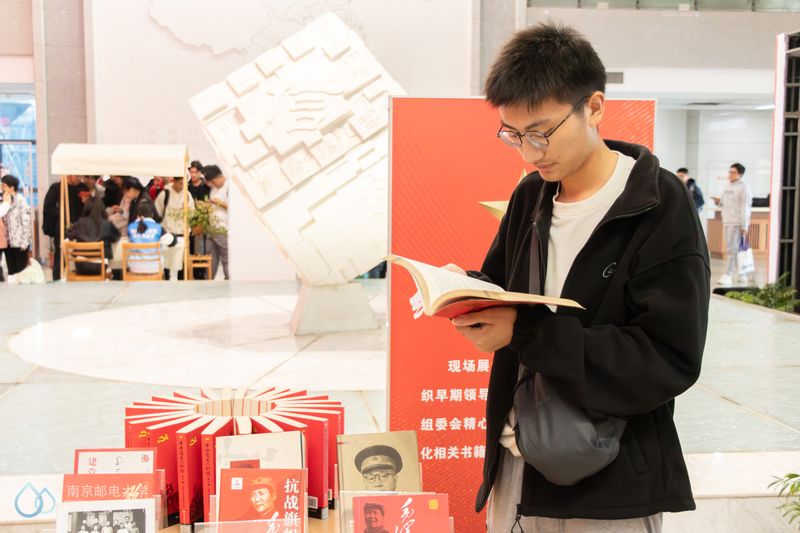 万物始藏间,立冬翩然至。岁月峥嵘,同学少年。11月7日下午,做爱视频 图书馆联合南京红色文化志愿者联盟,在仙林校区图书馆二楼开展“共沐书香 红色润心”红色市集活动。南京红色文化志愿者联盟秘书处项目总策划人、龙虎网总经理助理高菲,校党委宣传部、图书馆、做爱视频 相关负责人,南邮红色文化志愿者以及师生代表参与本次活动,共同感受红色力量,了解和传播红色文化。