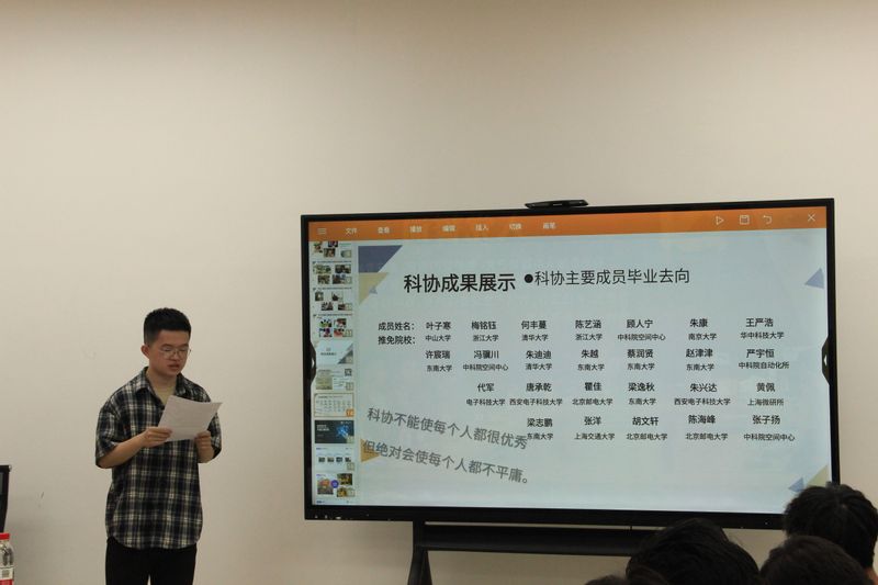 在主席团工作汇报环节,主席团成员依次发言,系统回顾了科协过去一学年在活动策划、执行管理、资源整合及团队协作等方面取得的成果。他们通过详实的数据与案例,展现了科协在学术竞赛、科技创新、校内外合作等领域的工作亮点,并针对现存问题提出优化建议,为下一阶段工作指明方向。