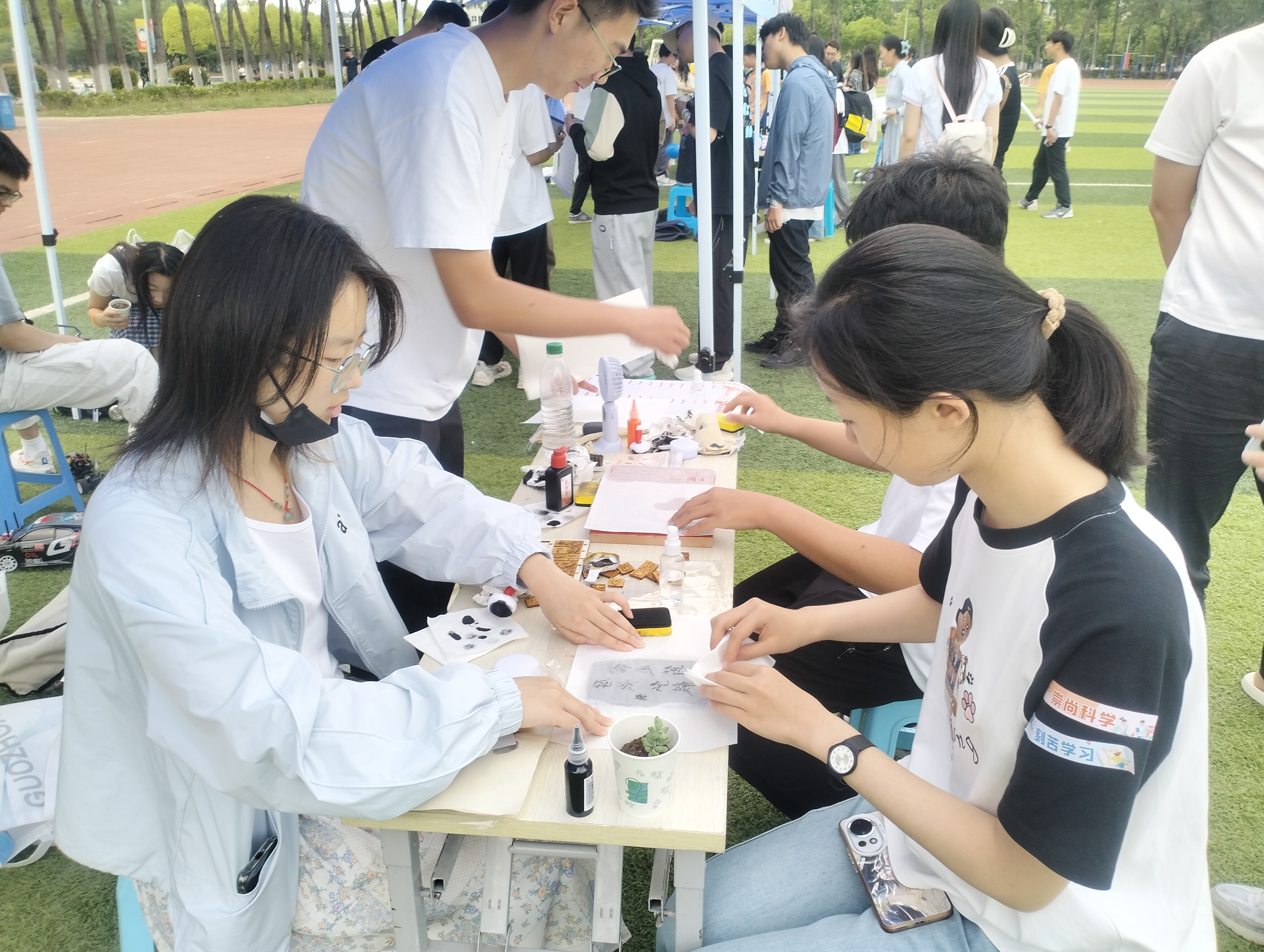 在学院青年学习社的组织下,学生通过拓印校训、书写爱国诗词,体悟“厚德、弘毅、求是、笃行”的南邮精神。在笔墨纸砚间,传统文化与家国情怀相融,坚定文化自信,筑牢民族认同。
