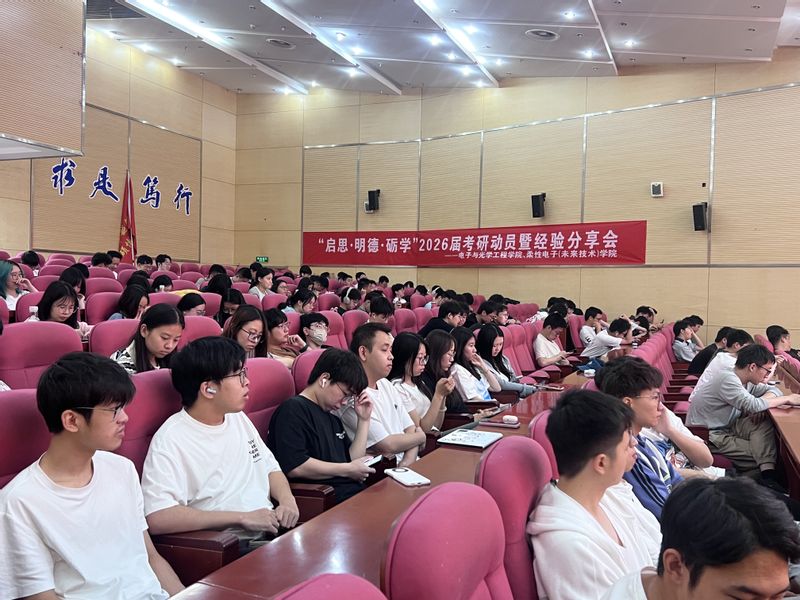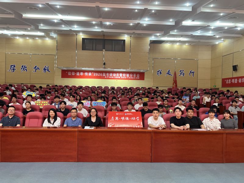 为帮助2026届学子明确考研目标、科学规划备考,5月28日下午,电光柔学院在图书馆四楼报告厅召开2026届考研动员会。学院党委副书记徐磊、教务处副处长臧庆,国科大联培单位、中科院上海天文台等高校招生负责人,2025届辅导员赵昱莼及优秀考研学生代表出席会议,2026届全体辅导员及考研学生参会。