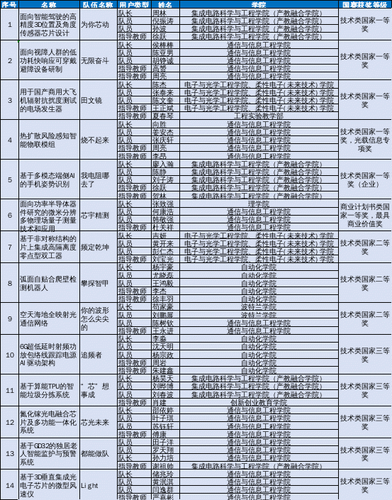 学校“兆易创新杯”第二十届中国研究生电子设计竞赛全国总决赛获奖名单